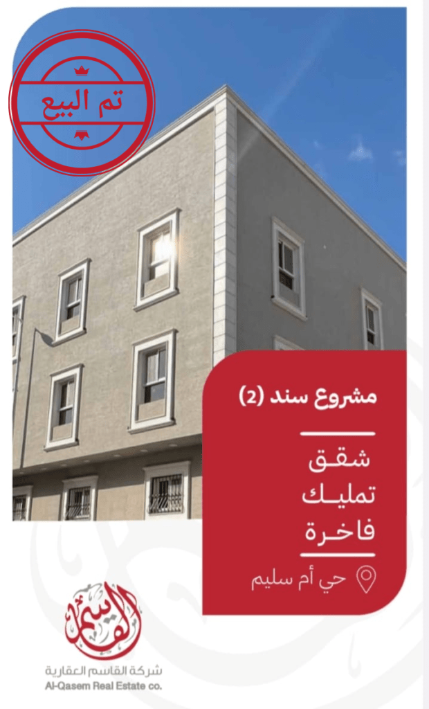 تم بيع المشروع ومتبقي شقتين للنجــاح الكــبير والإقبــال الــذي لاقــاه