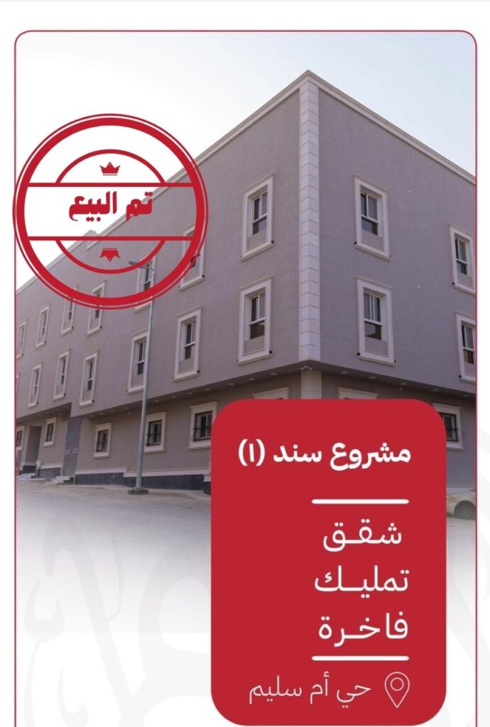 تم بيع المشروع ومتبقي شقتين للنجــاح الكــبير والإقبــال الــذي لاقــاه